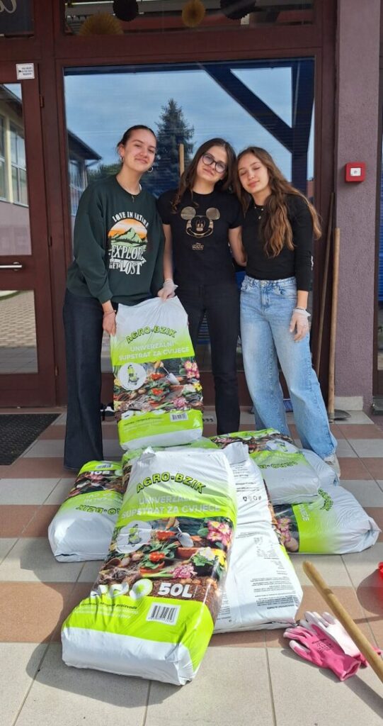 Učenice 8.a razreda s veseljem su nastavile uređivati školski vrt, koji zahvaljujući ovoj donaciji postaje sve ljepše i ugodnije mjesto za boravak i učenje.