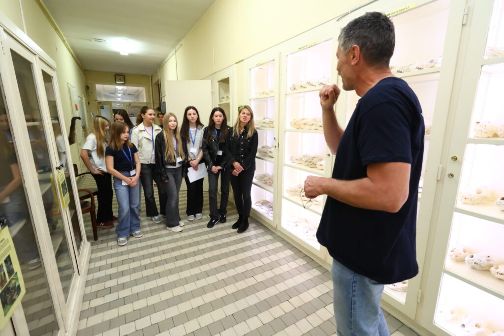U sklopu terenske nastave imali smo prilike vidjeti kabinet Ive Horvata gdje se on pripremao za nastavu, originalne anatomske atlase životinja , digitalne atlase, projekte o praćenju risova i vukova, stalni postav knjižnice…i na kraju Horvatov brijeg. Tu je profesor s puno ljubavi sadio drveće, donosio kamenje s Risnjaka i formirao zelenu oazu usred Veterinarskog fakulteta. Naše domaćice pripremile su nam papire s logom fakulteta i grančice tise. Svaki učenik na sjećanje s terenske nastave nosio je plastificiranu grančicu tise koju je profesor u tišini posadio…što je i naša ideja za dalje.